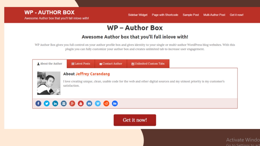 We have arrived into premium WordPress author box plugins territory with WP – Author Box. This plugin is extremely customizable, intuitive, use-friendly, spectacular, and unique. It is a perfect choice if you are searching for a way to show off your authors’ info. With WP – Author Box you have full regulate over the look and feel of the author box and you can usage it to give originality to your blog posts. This best plugin has tools such as Google authorship, many social buttons, operator role permissions, customizable skins, numerous shortcodes and widgets, co-author option, and a totally/ receptive design. To learn additional about it and what it can do I recommend testing it out.