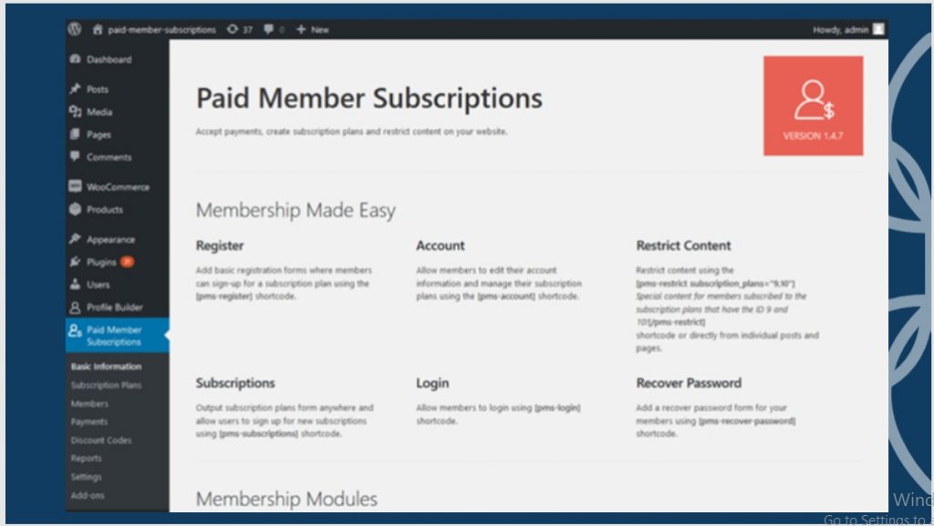 Keep in mind that it’s not a particular plugin solution for making a membership website. You’ll want to use the free WooCommerce plugin; but, for accepting recurrent payments, you’ll similarly have to install WooCommerce Subscriptions plugin.